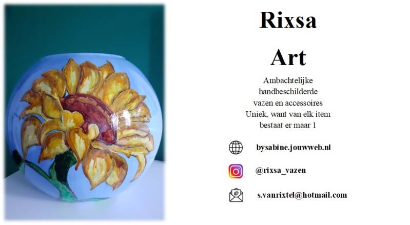 Mocht u interesse of vragen hebben over een van deze mooie unieke kunstwerken, stuur een email naar s.vanrixtel@hotmail.com of neem contact op via Instagram via onderstaande knop, en ik neem zo snel mogelijk contact met u op.